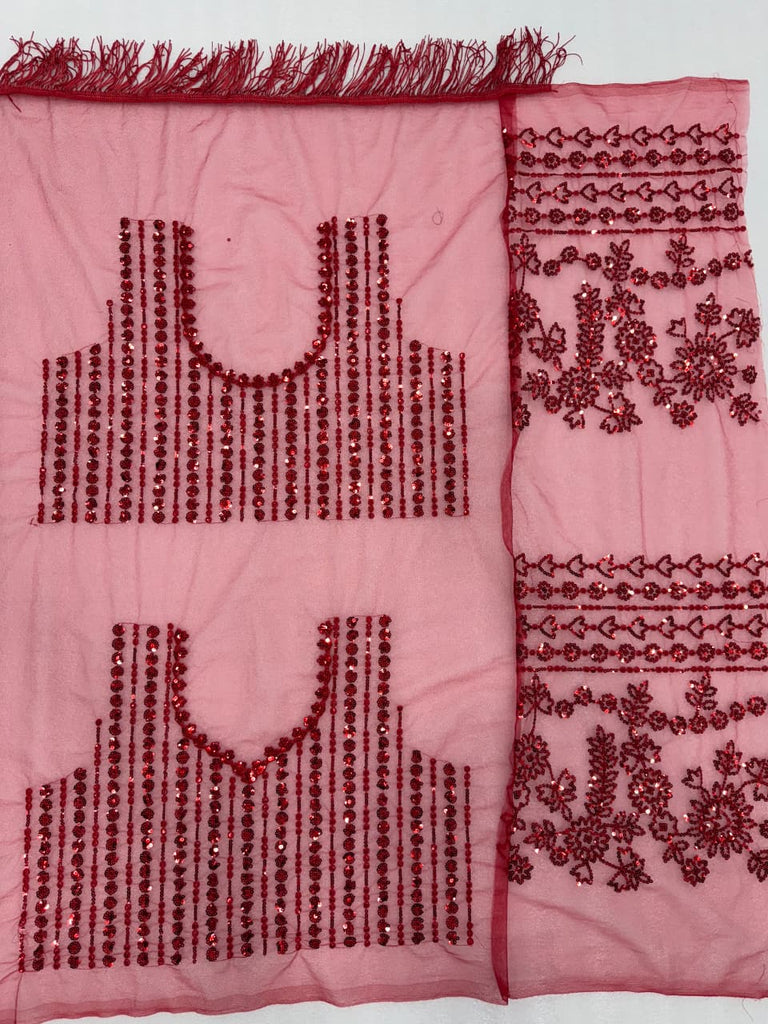 Blouse: Made from coordinating Net fabric with a length of 0.8 meters, featuring Heavy Embroidery on both the front and back, as well as on the sleeves, allowing for a complete, high-fashion look.