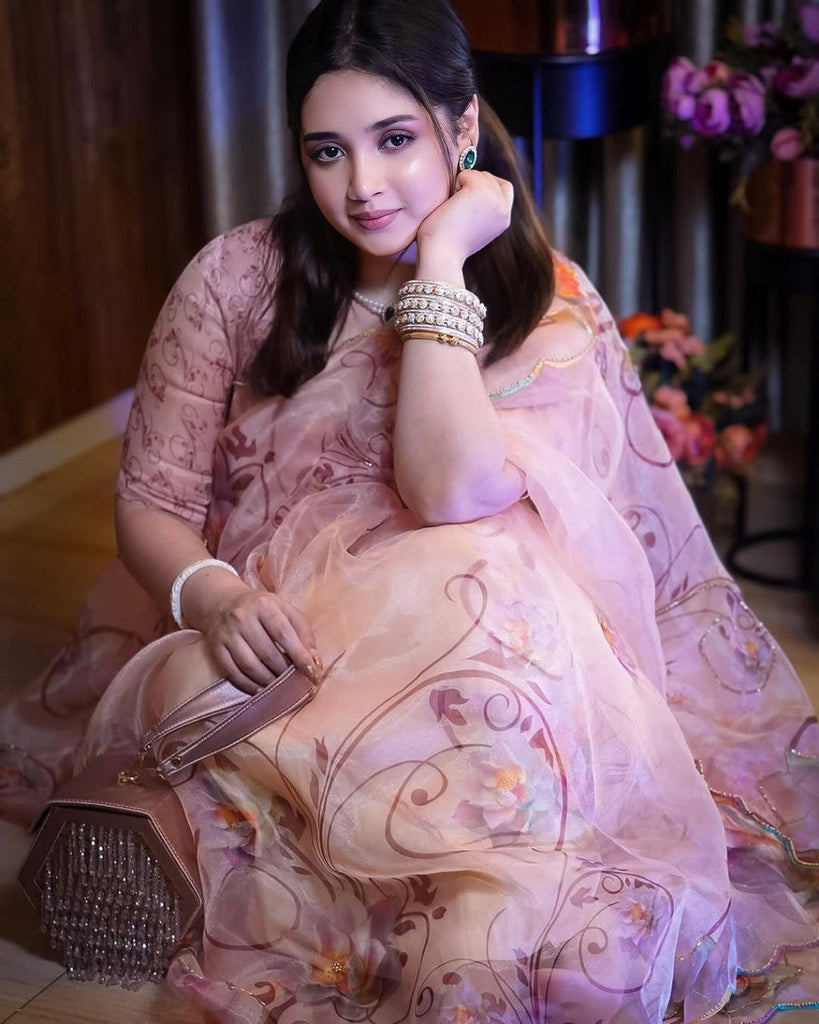Organza Silk Moti Hnd Work Pirnted Saree Blouse