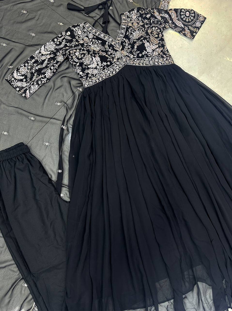 Party Wear Black Color Georgette Sequence Salwar Suit