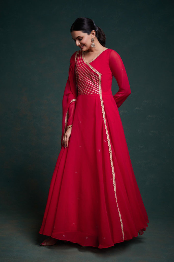 Party Wear Red Color Georgette Gotta Pattii Gown