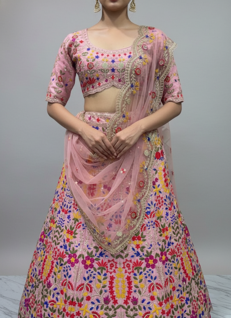 Premium Faux Georgette Embroidered Lehenga Choli With Sequins Work, Heavy Cancan & Net Dupatta – Wedding & Party Wear