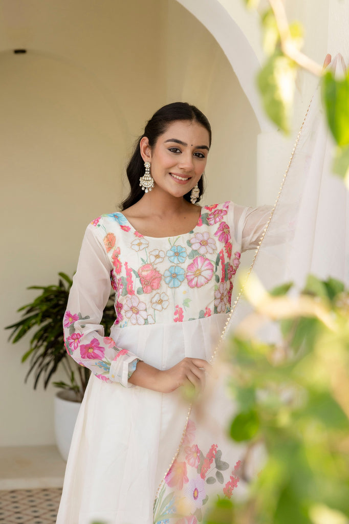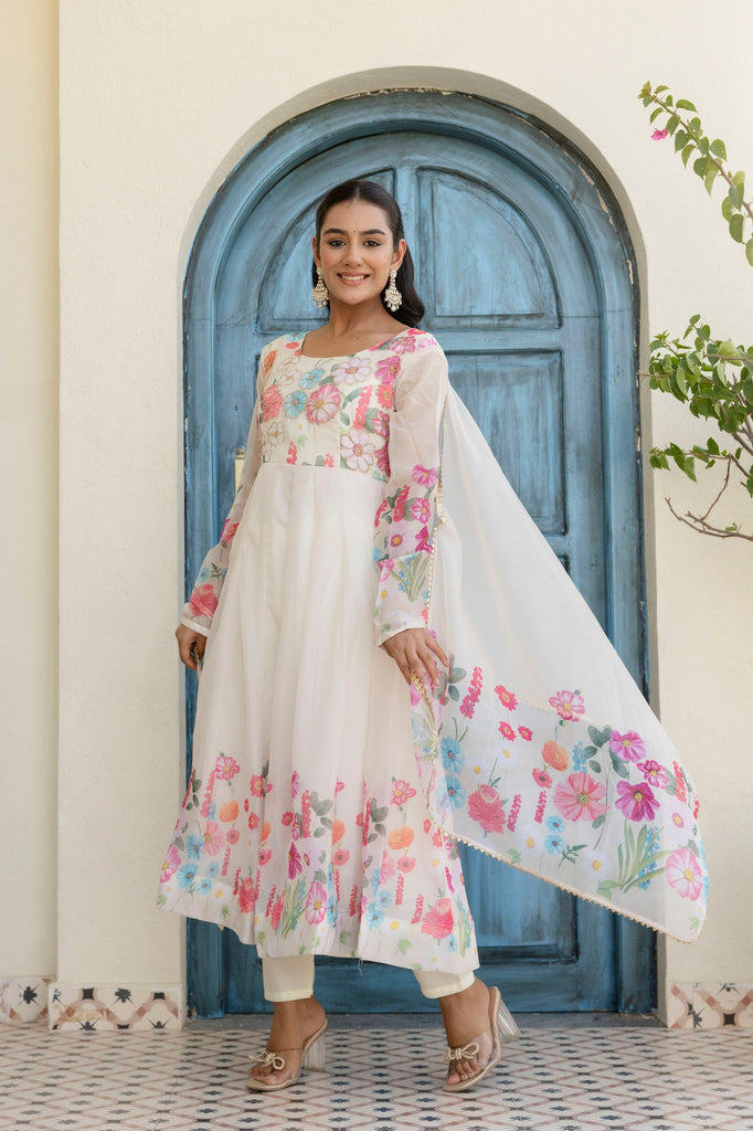 White Color Organza Silk Digital Printed Top Pent Dupatta