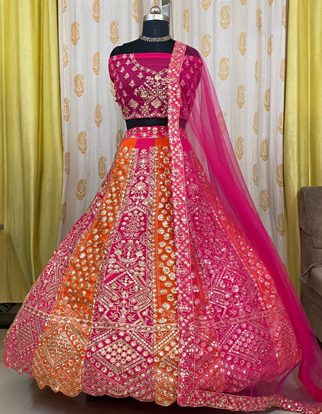 Pink Georgette Sequence Embroidered Work Lehenga Choli