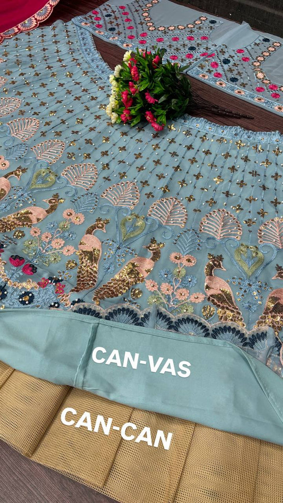 Wedding Wear Georgette Sequence Chine Work Lehenga Choli