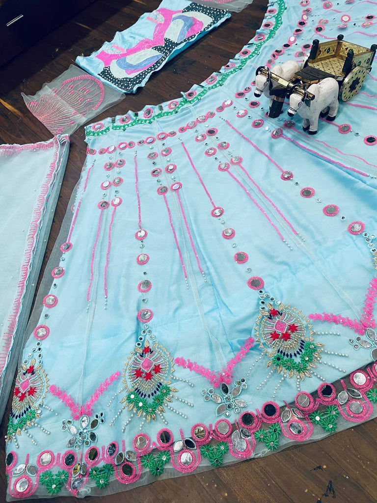 Mirror Work Lehenga, Butterfly Net Lehenga Choli, Wedding Wear Lehenga, Real Mirror Embroidery, Lehenga with Cancan, Sequins Work Ghagra, Ethnic Wear for Women, Semi-Stitched Lehenga Choli, Party Wear Lehenga