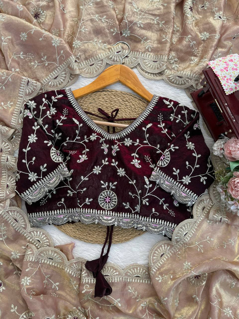 | Blouse Work | Intricate Thread & Sequence (Front & Sleeves) |
