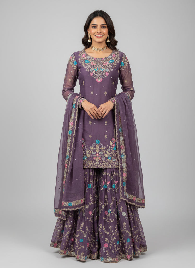 Premium JMC Silk Sharara Set with Sequence & Rivet Moti Work