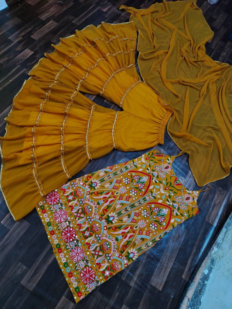 Amazing Mustard Color Occasion Wear Mirror Work Georgette Sharara Suit