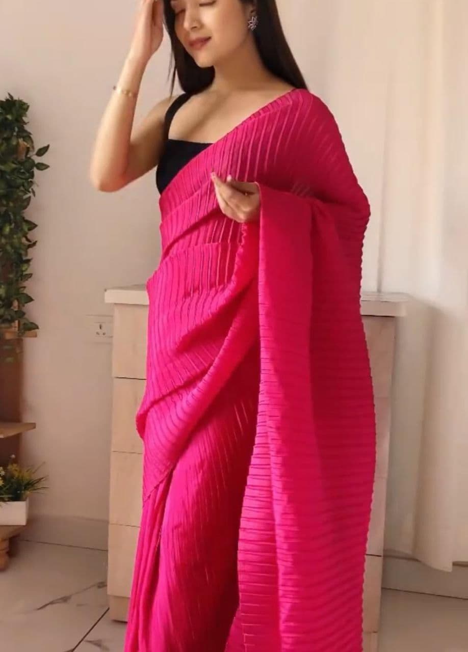 Attractive Rani Pink Color Pleated Design Work Georgette Saree Blouse