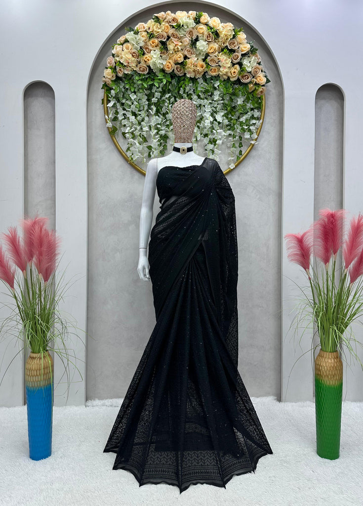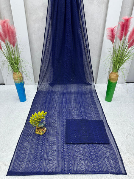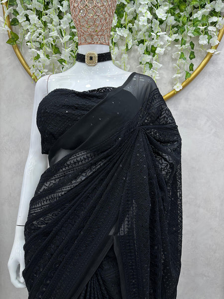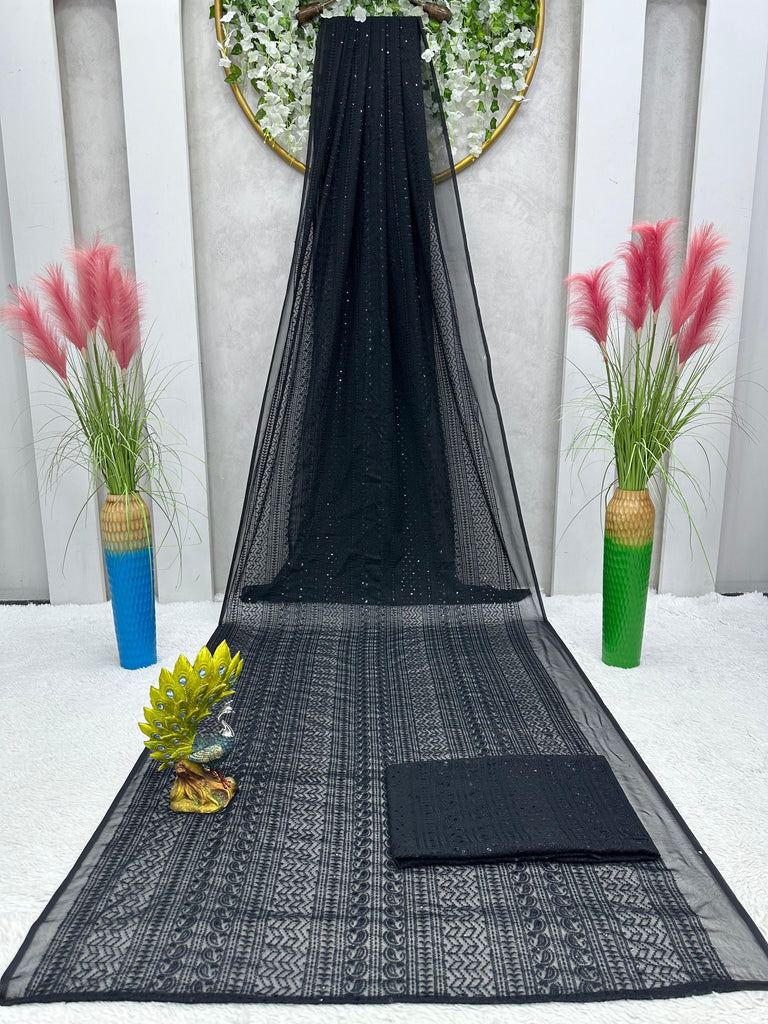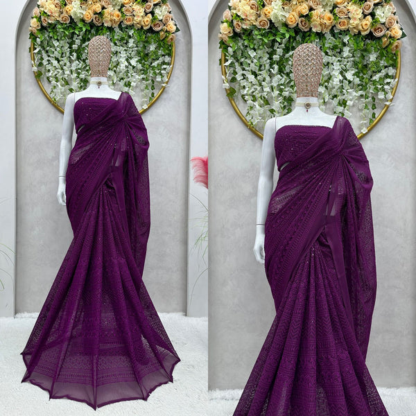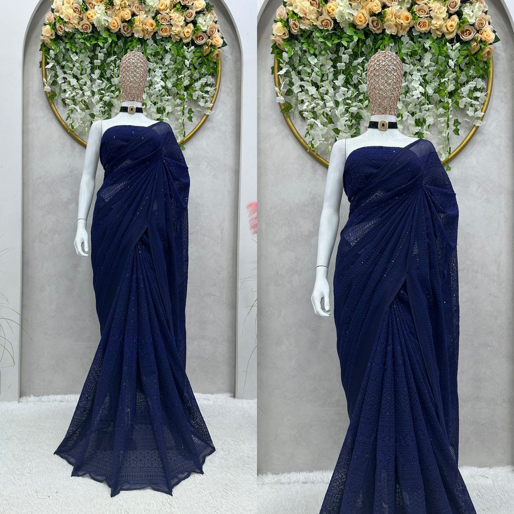 Looking some one for this same color beautiful Designer *Karva Chouth* Saree on Faux Georgette Fabric with Thread work and blouse on also Faux Georgette Fabric Thread work.ππ»ππ» *Saree*ππ»ππ»