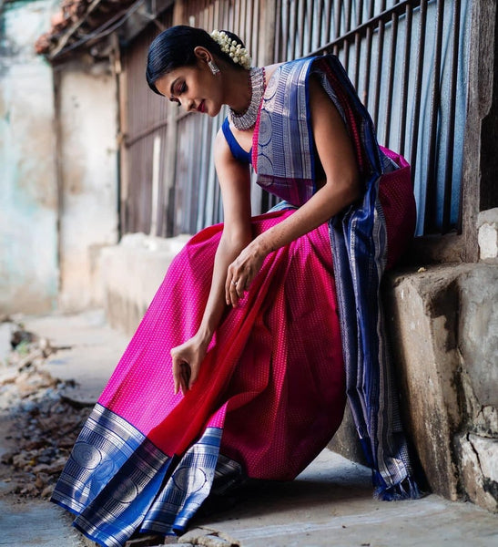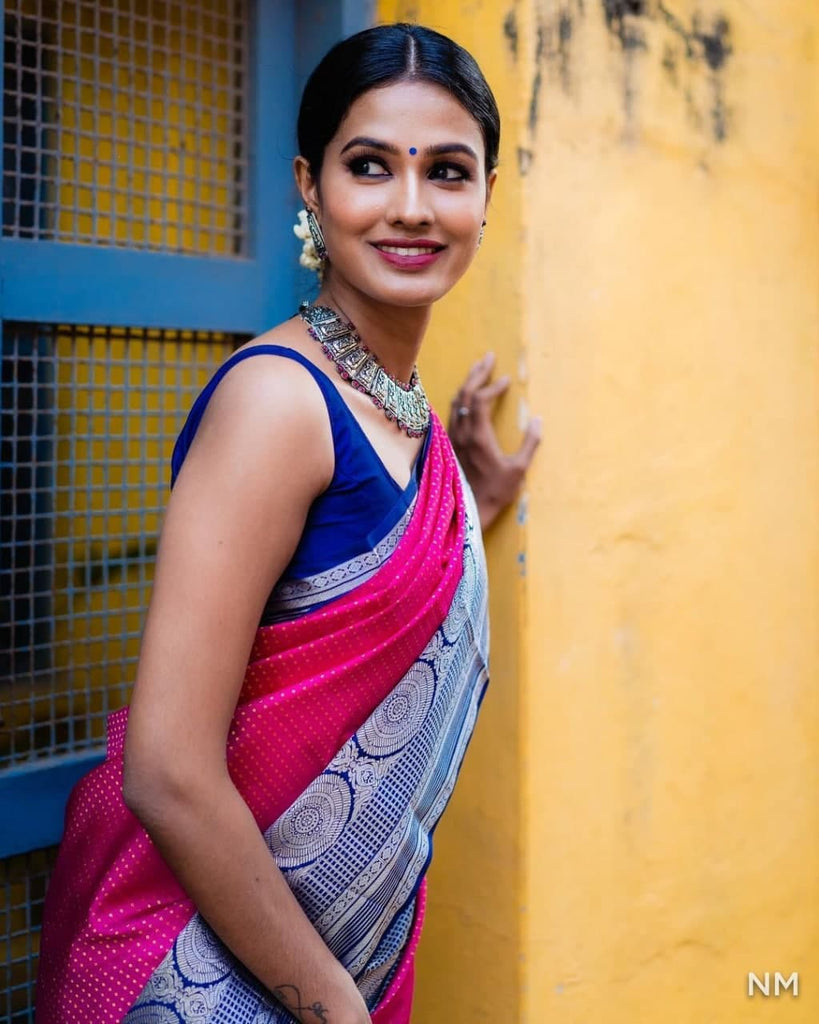 Beautiful Rani Pink Color Festival Wear Silk Jacquard Work Saree Blouse