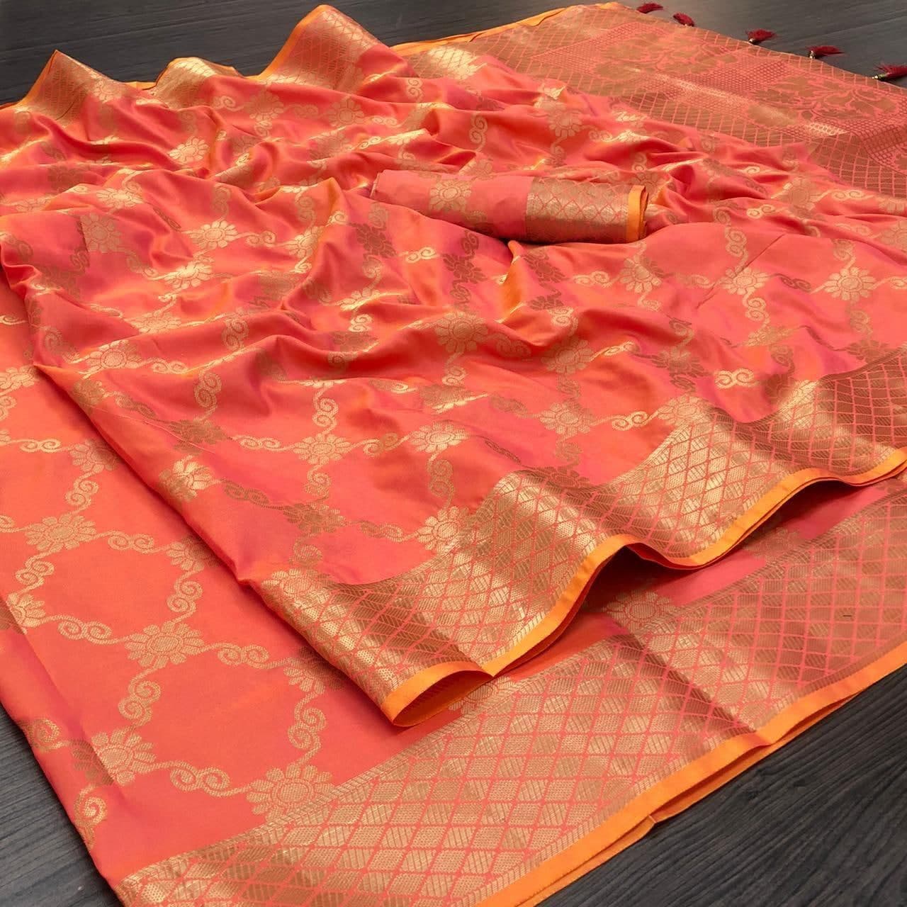 Bewildering Peach Color Art Silk Zari Weaving Saree Blouse For Women