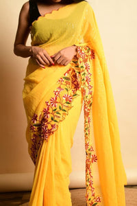 Bewildering Yellow Color Regular Wear SIlk Georgette Multi Sequence Work Saree Blouse