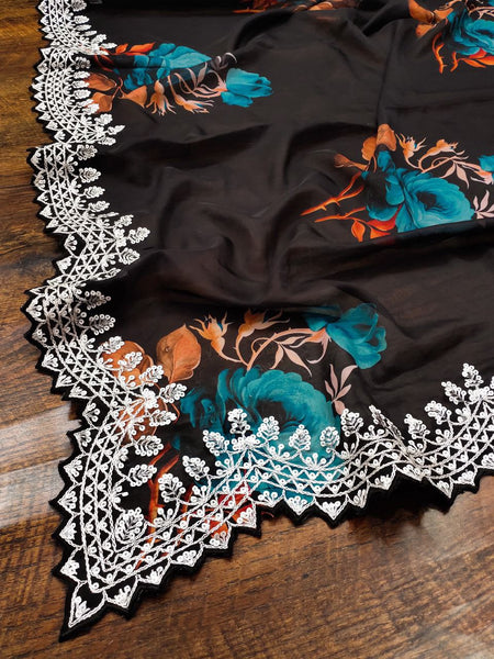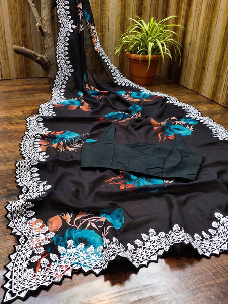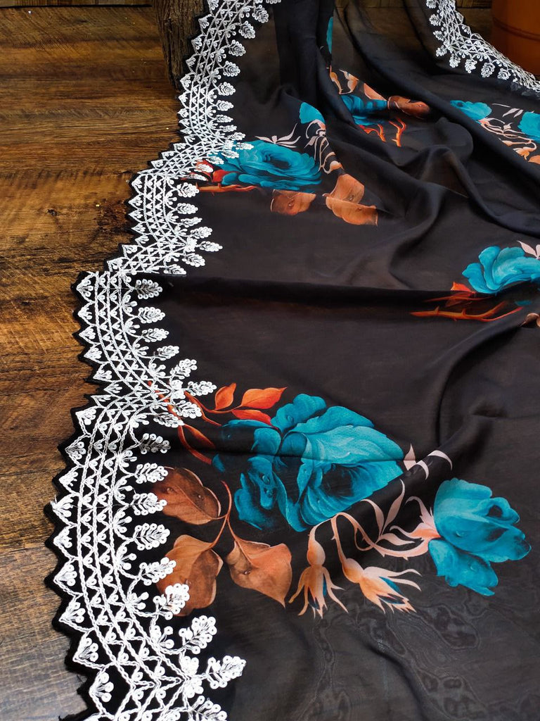 Black Color Digital Print with border Saree