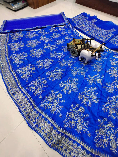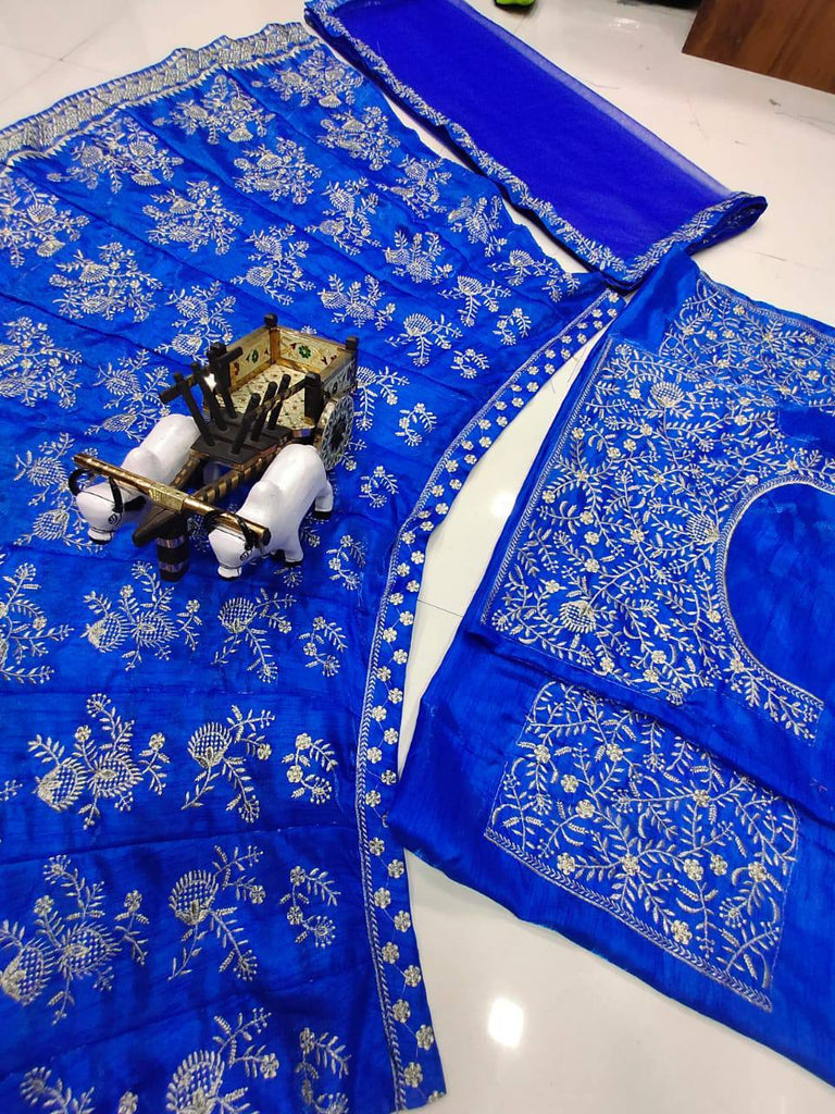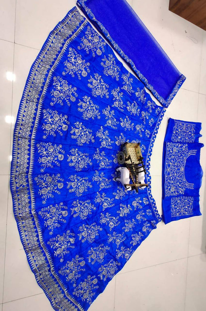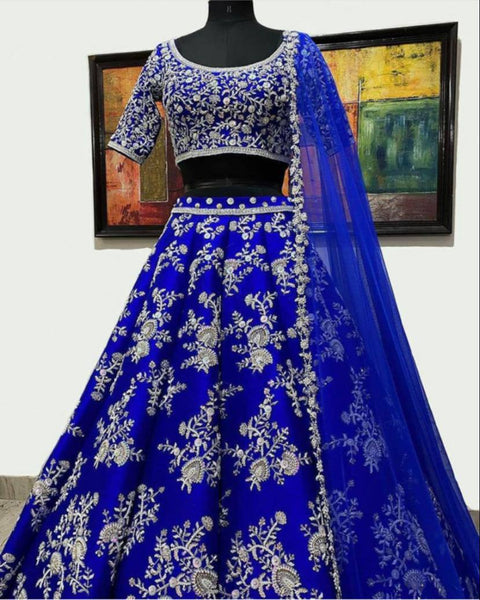 Blue Color Bangalori satin silk Embroidered work Lehenga