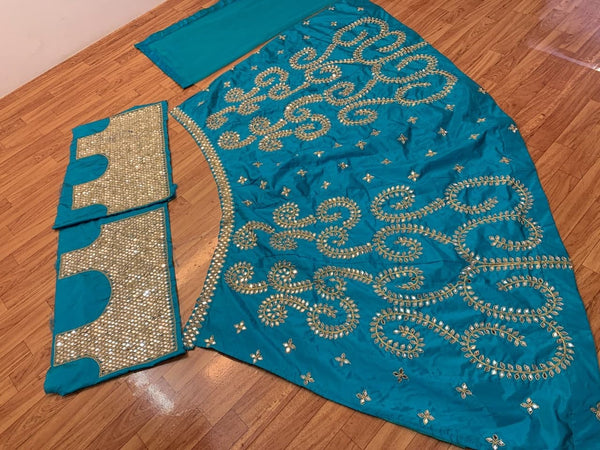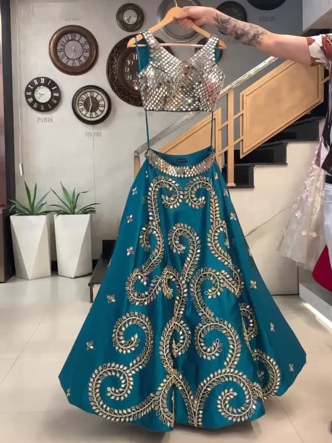 Capricious Firozi Color Taffeta Silk Embroidered Work Lehenga Choli