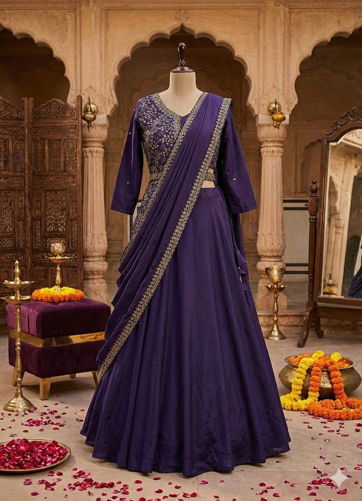 *Dupatta Chinnon Silk Lace Border Attached with Lehenga*