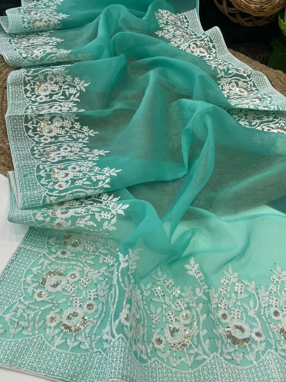 Decent Sea Green Color Running Wear Organza Sequence Work Saree Blouse