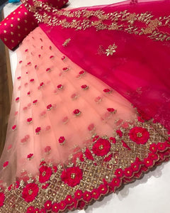 Desirable Peach Color Festival Wear Cut Thread Multi Work Organza Design Lehenga Choli
