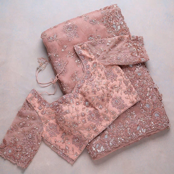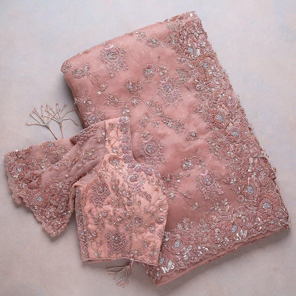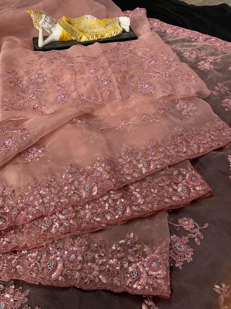 Dismaying Baby Pink Color Function Wear Organza Sequence Work Saree Blouse