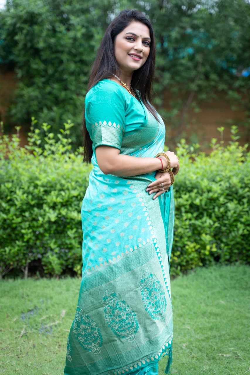 Dismaying Firozi Color Art Silk Casual Wear Zari Weaving Saree Blouse