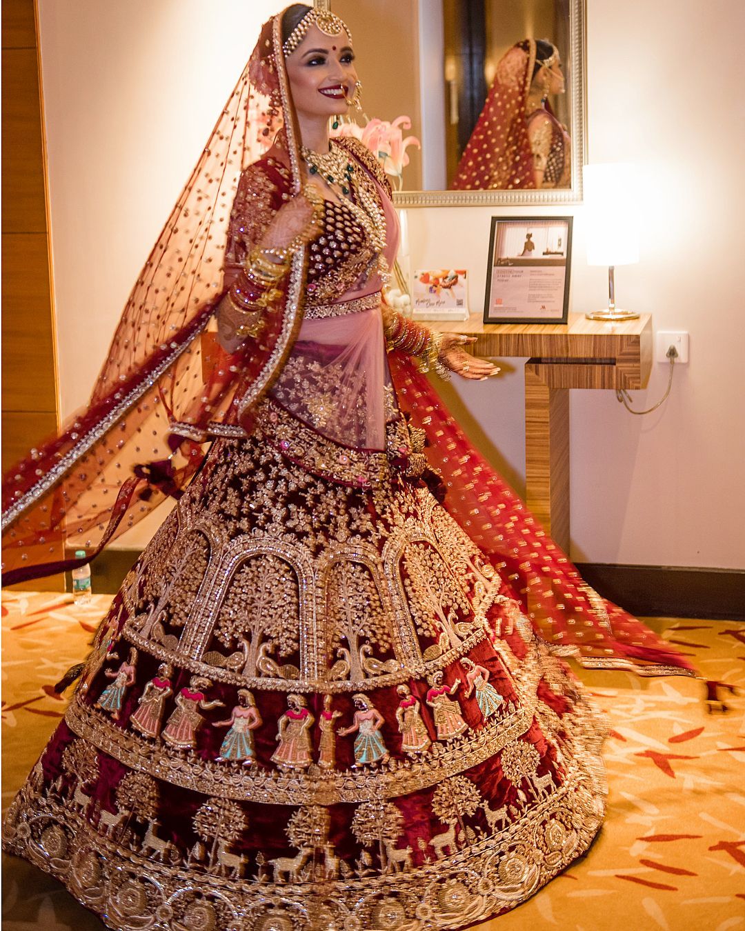 Dismaying Maroon Color Wedding Wear Zari Embroidered Work Velvet Lehenga Choli