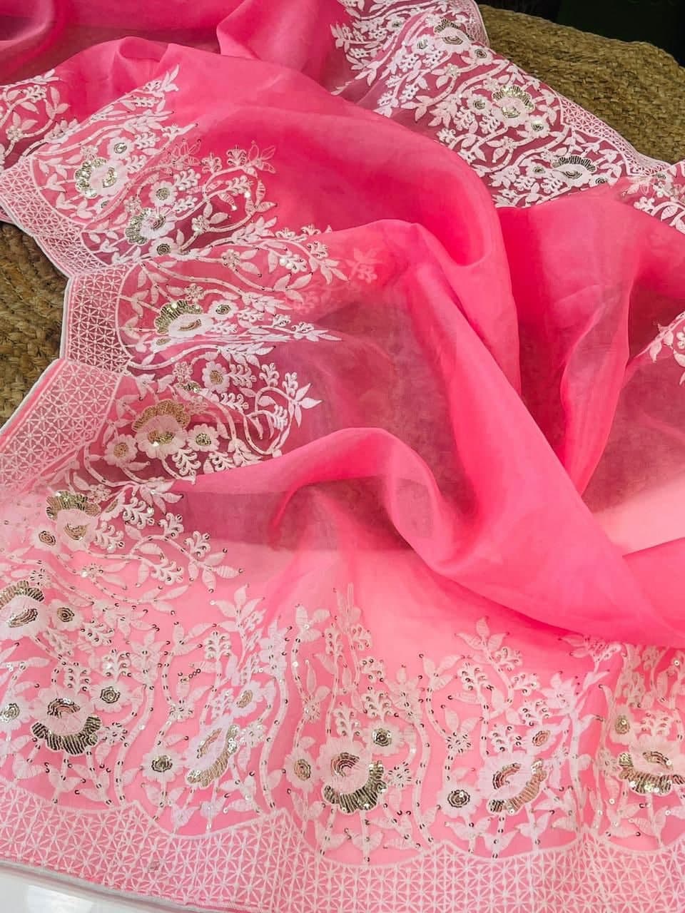 Dismaying Pink Color Running Wear Organza Sequence Work Saree Blouse