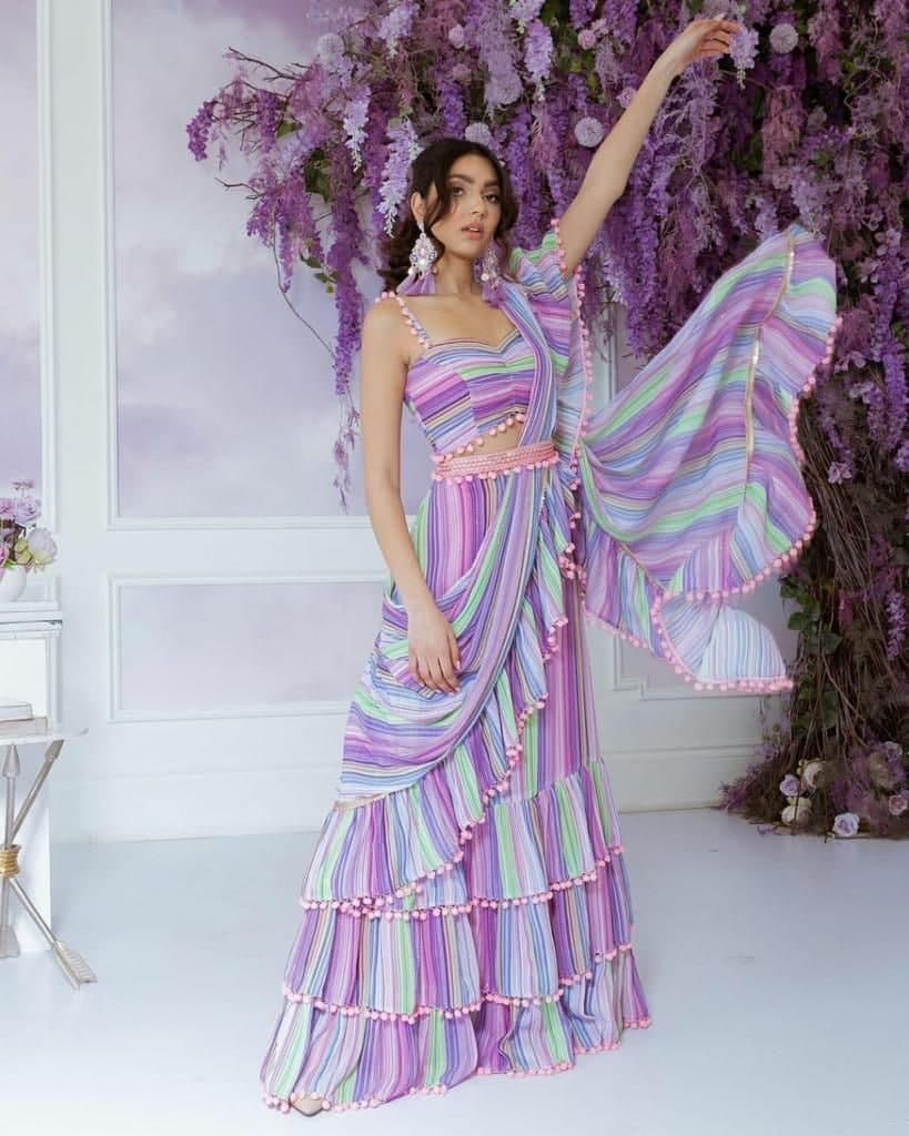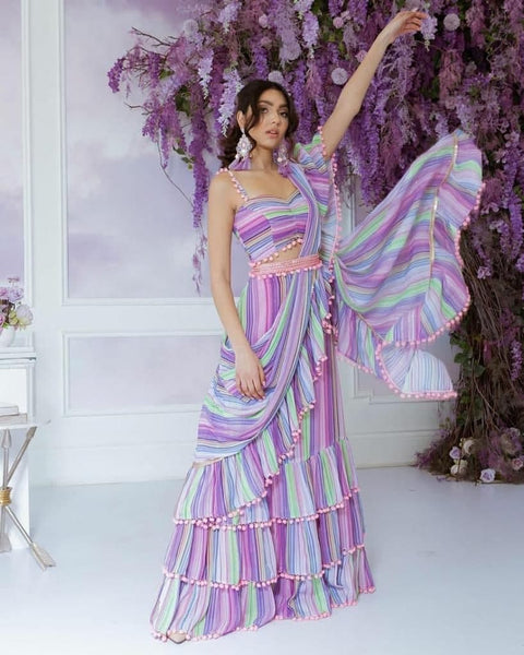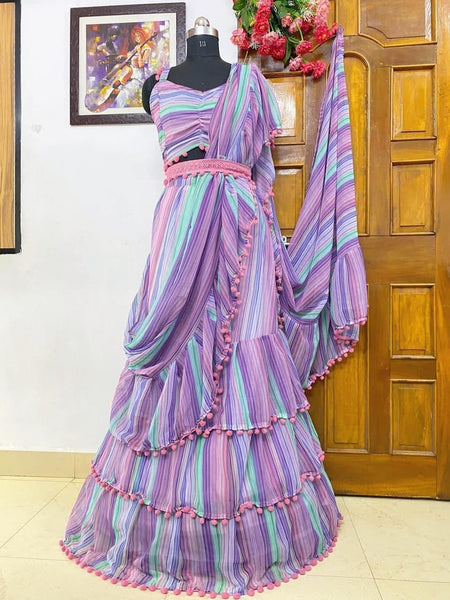 Extraordinary Violet Color Printed Ruffle Georgette Party Wear Lehenga Choli