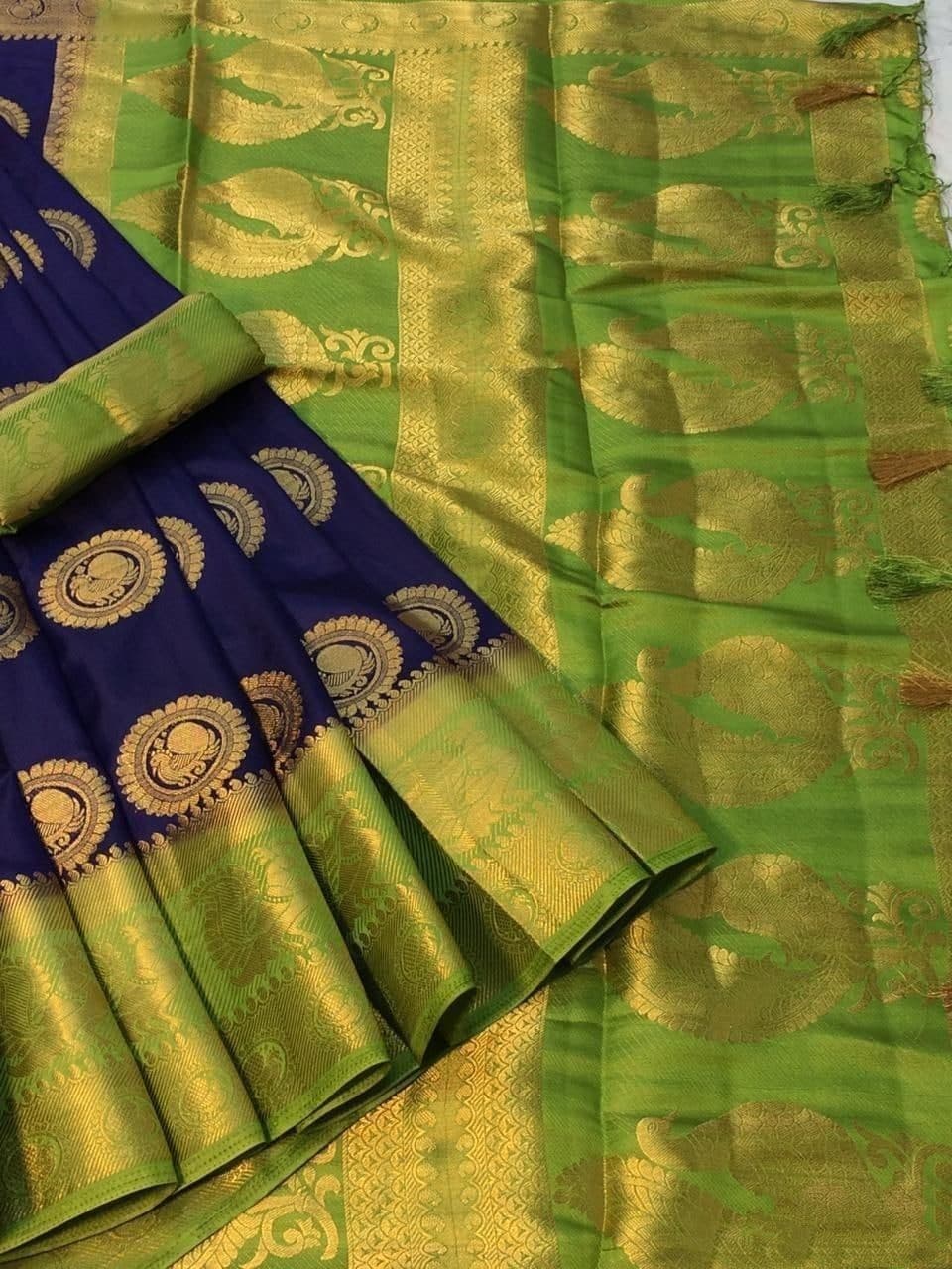 Fantastic Blue Color Party Wear Nylon Silk Grand Pallu Saree Blouse
