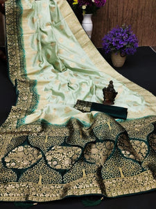 Flamboyant Green Color Silk Design Gotta Patti Work Saree Blouse For Women