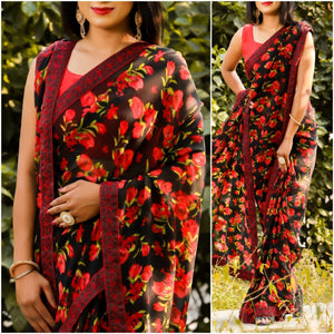 Flattering Black Color Casual Wear Georgette Printed Work Saree Blouse