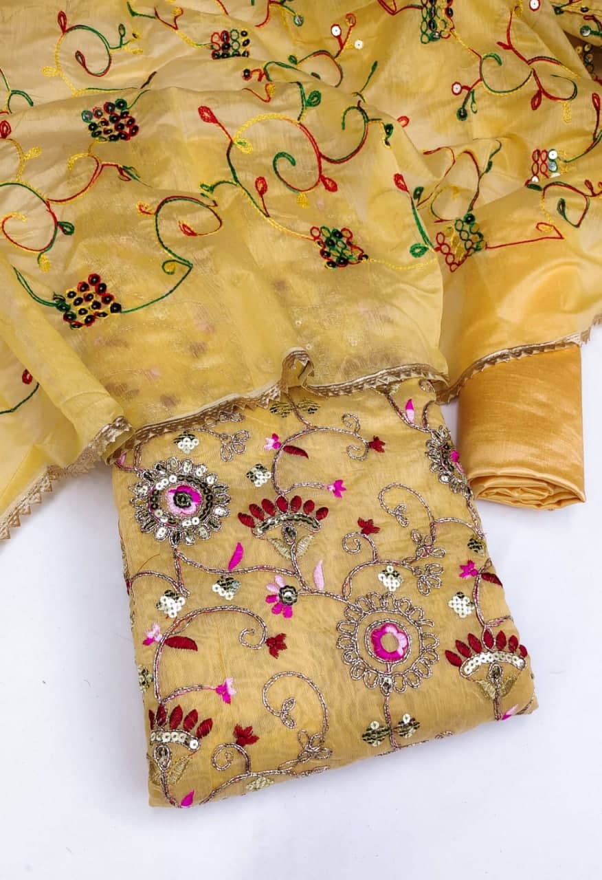 Flaunt Yellow Color Chanderi Sequence Work Festive Wear Salwar Suit