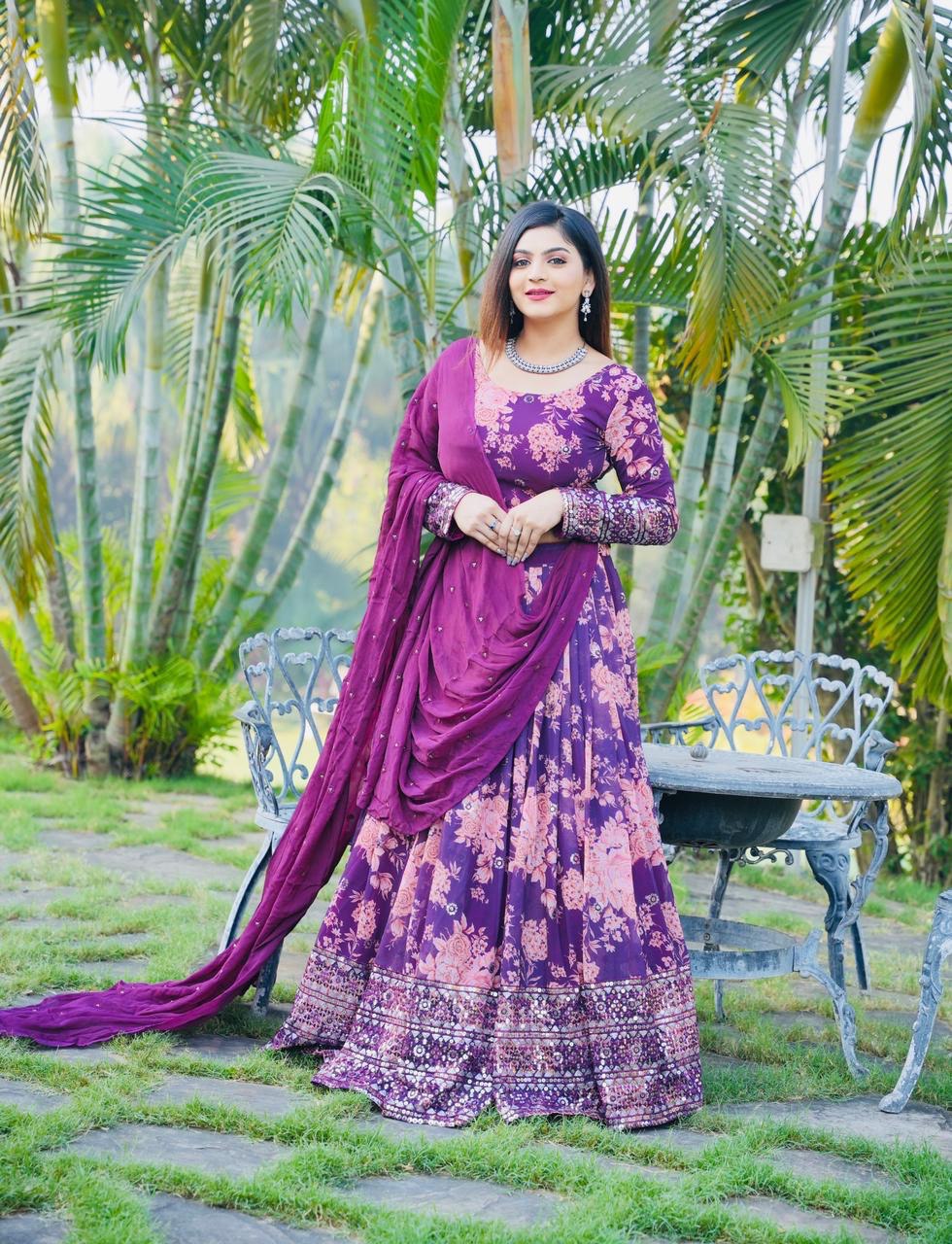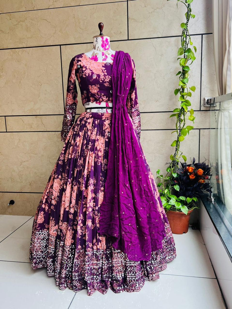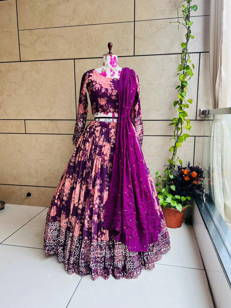 Georgette Dulhan Purple color embroidered Lehenga