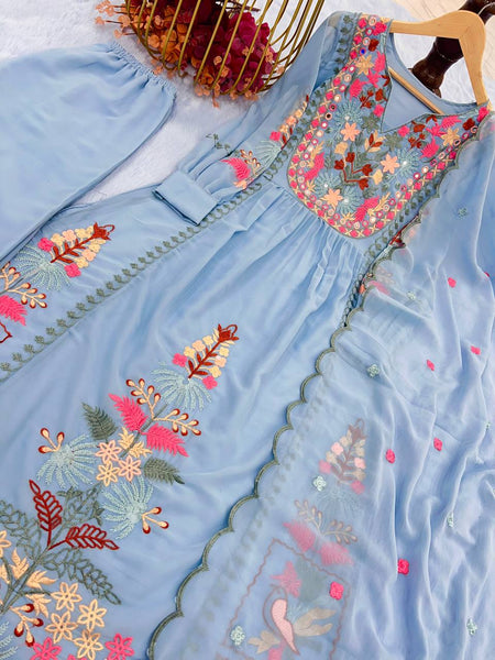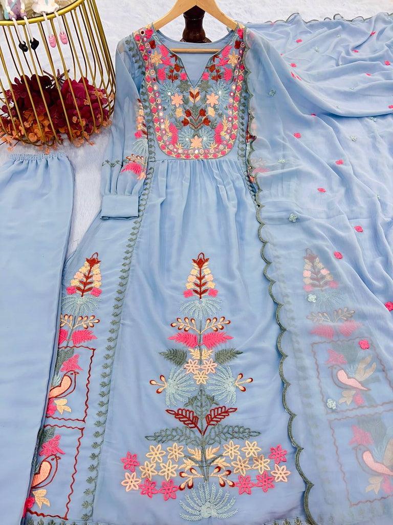 āTop Fabric :Heavy Faux Georgette With Heavy Embroidery Work With Riyal Mirror Hand Work With Fancy Full Sleeve