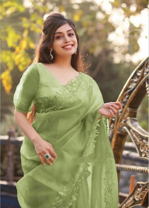 Glamorous Green Color Organza Embroidered Cut Work Saree Blouse