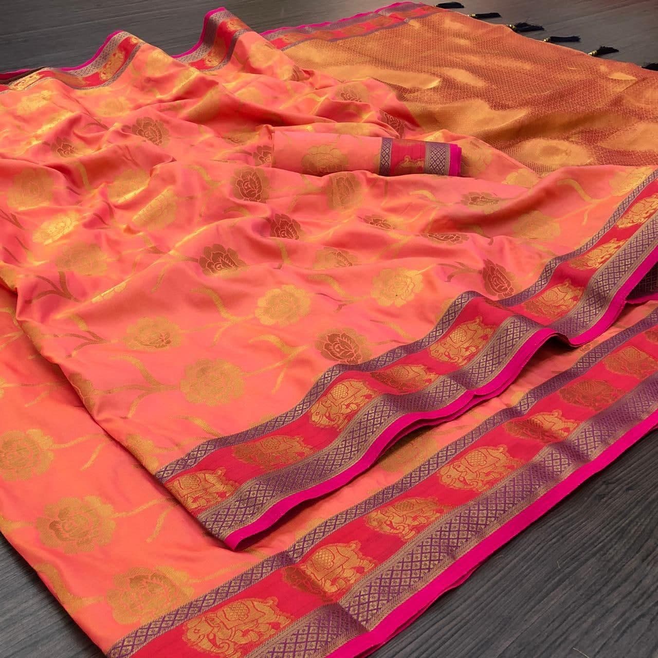 Glamorous Light Peach Color Weaving Designer Casual Wear Art Silk Saree Blouse