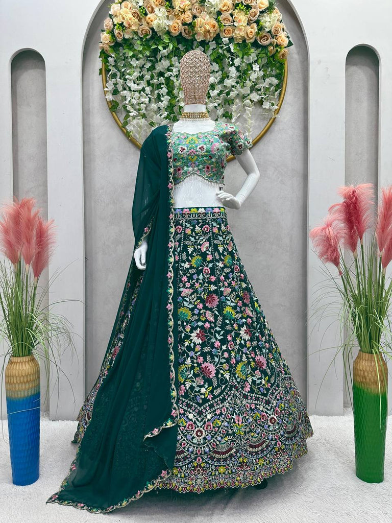 Gorgeous Green Color Georgette Sequence Work Lehenga Choli For Wedding Wear