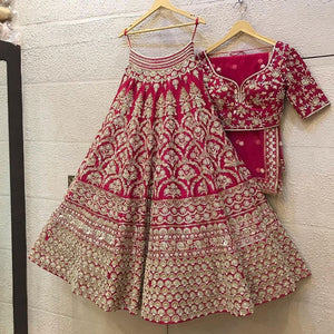 Gorgeous Rani Pink Color Designer Embroidered Work Art Silk Lehenga Choli For Wedding Wear