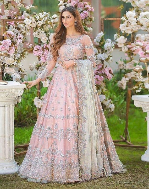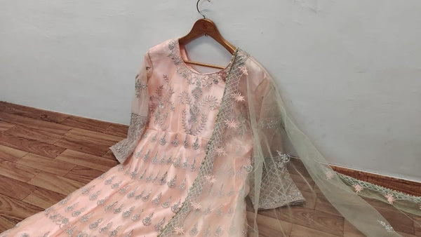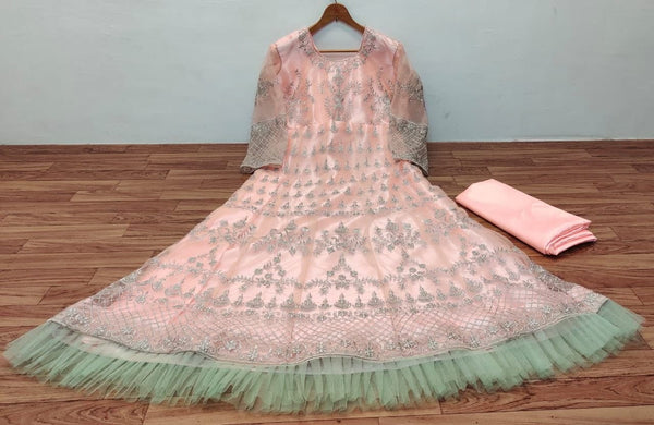 Graceful Peach Color Net Embroidered Work Party Wear Salwar Suit