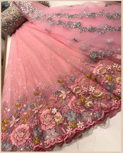 Grey Pink Color Organza Sequence Work Function Wear Lehenga Choli