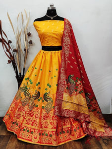 Groovy Yellow Color Function Wear Banarasi Silk Brocade Work Lehenga Choli