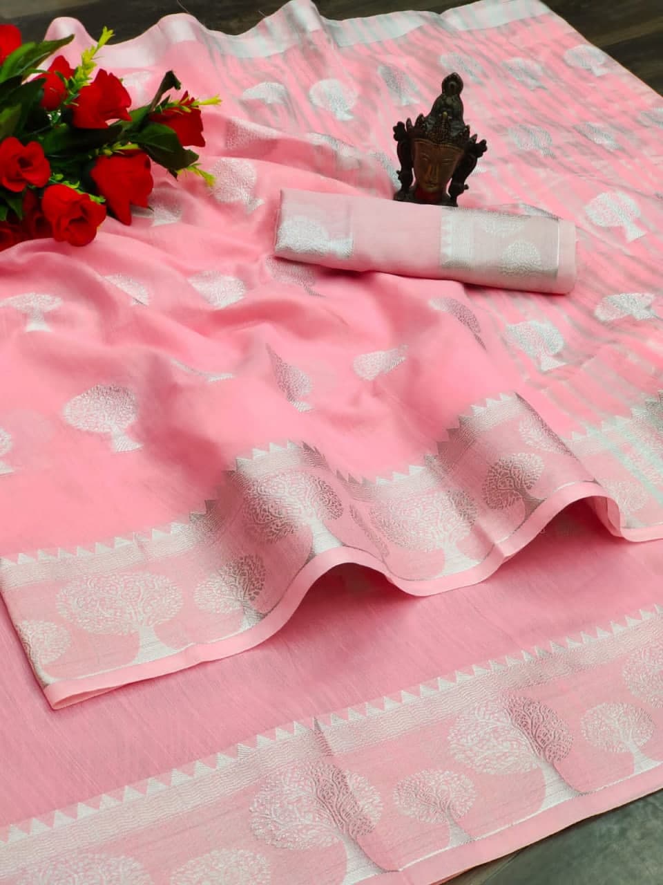 Incredible Baby Pink Color Occasion Wear Cotton Silk Jacquard Work Saree Blouse
