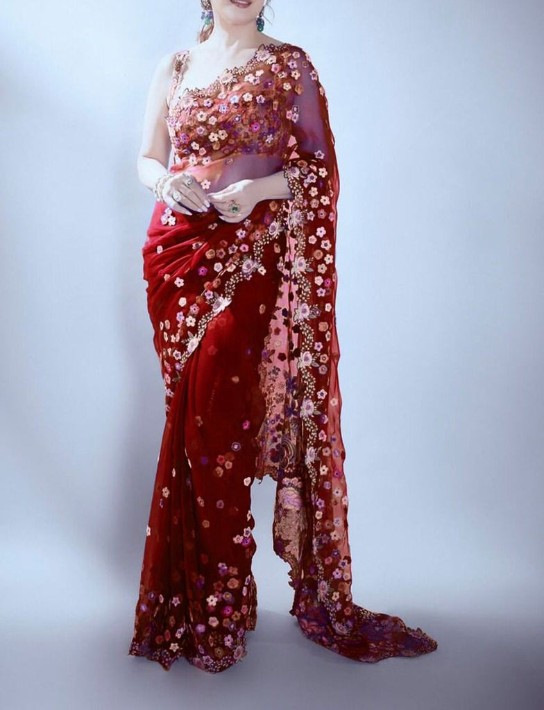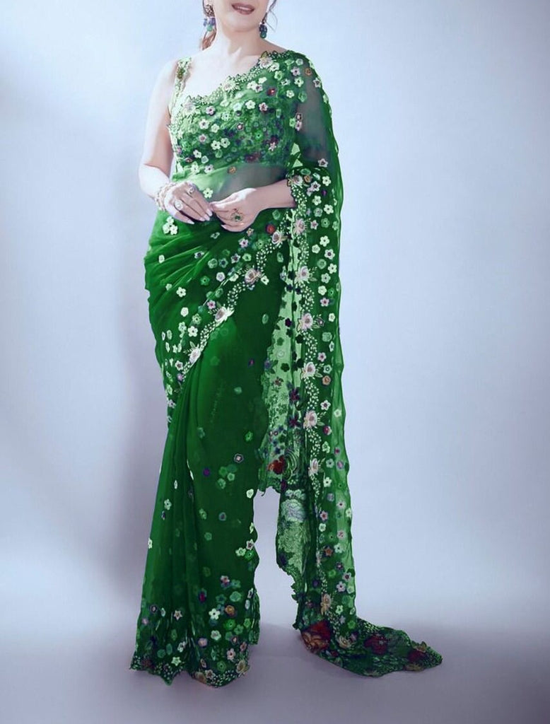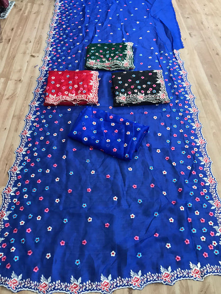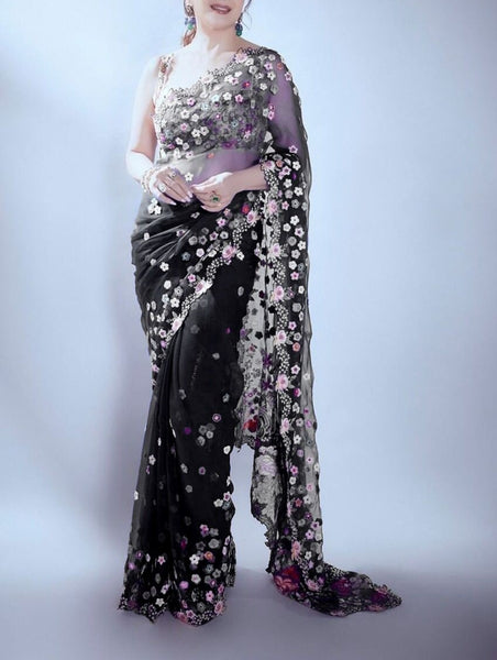 Organza Silk Embroidered SareeSaree Fabric : Organza Silk With Embroidery Thread Multi Color C Pallu Work