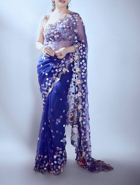 Blouse Fabric : Organza Silk With Embroidery Thread Work