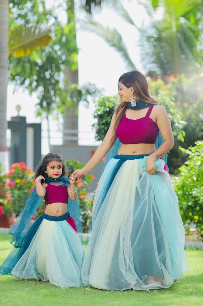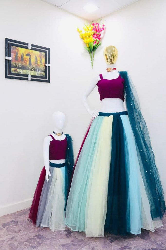 Latest Mother Daughter Net Embroidered Work Lehenga Choli