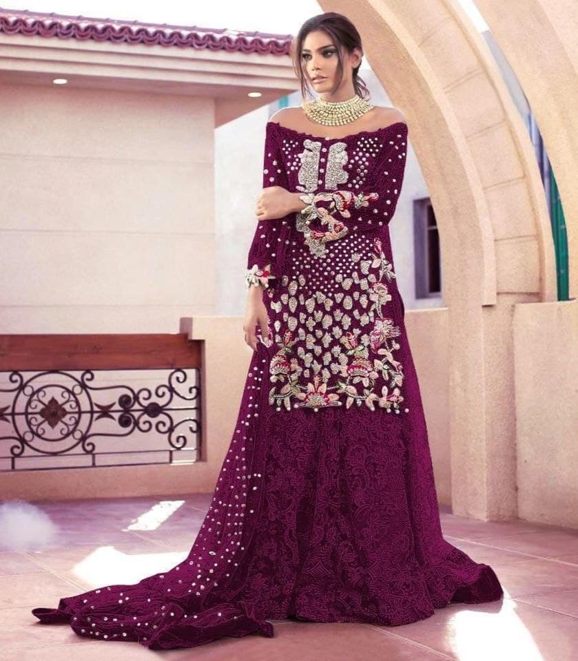 Noble Wine Color Occasion Wear Net Sequence Stone Work Salwar Suit
