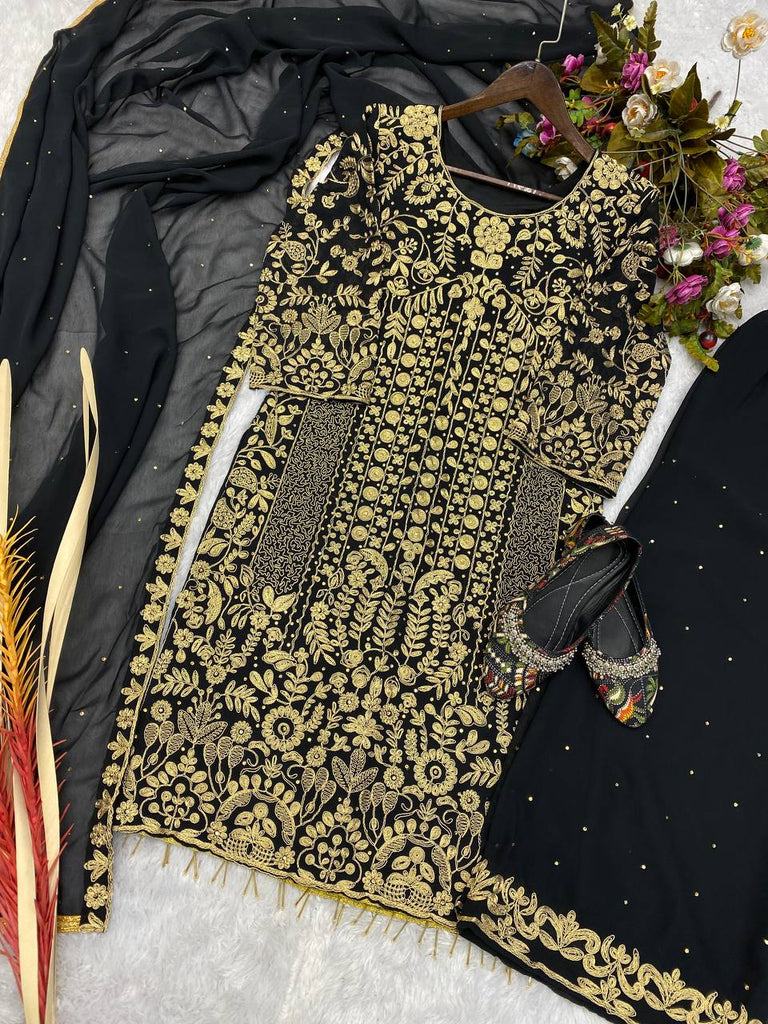Novelty Black Color Georgette Sequence Embroidery Diamond Work Salwar Suit