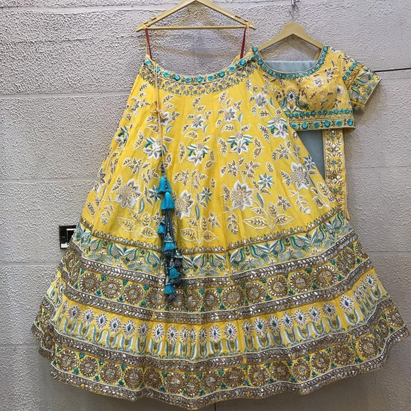 Novelty Yellow Color Satin Mirror Stone Work Party Wear Lehenga Choli Design