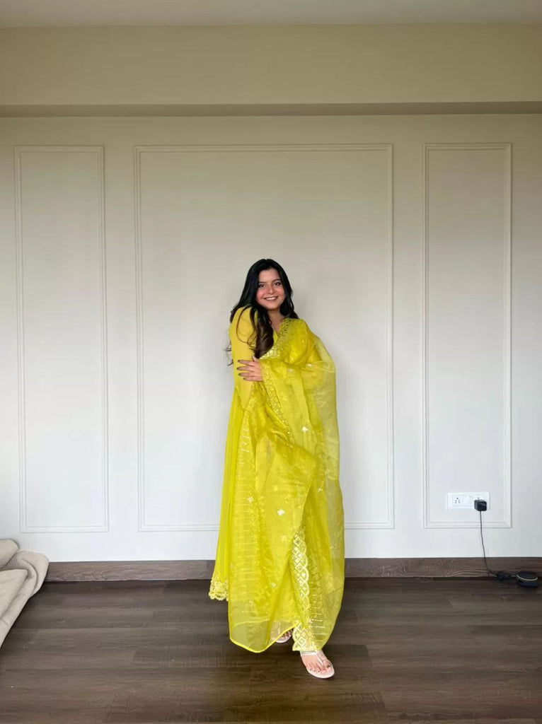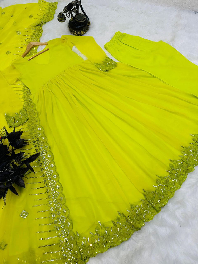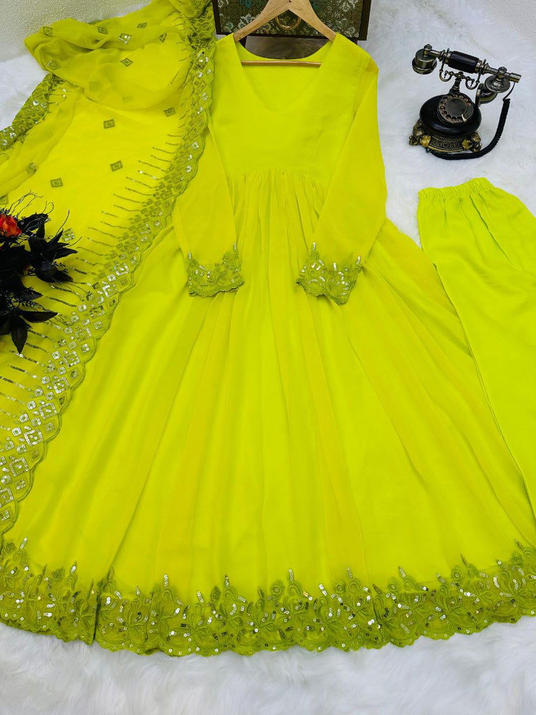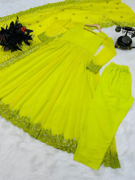 Parrot Green Color Georgette Anarkali Top Pent Dupatta Set