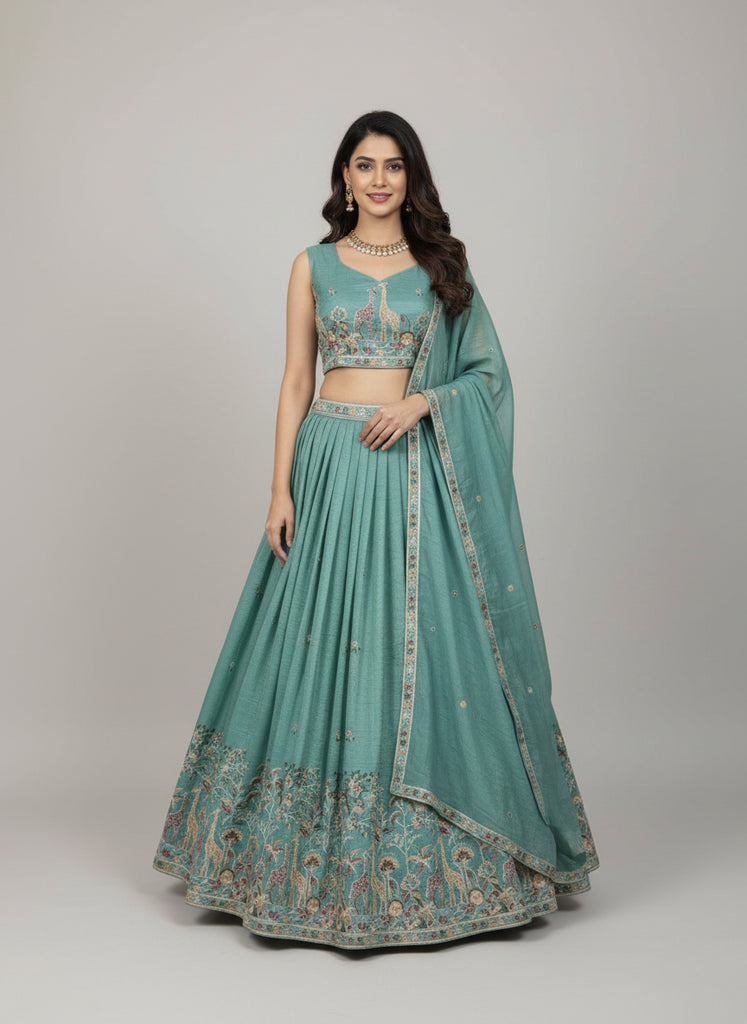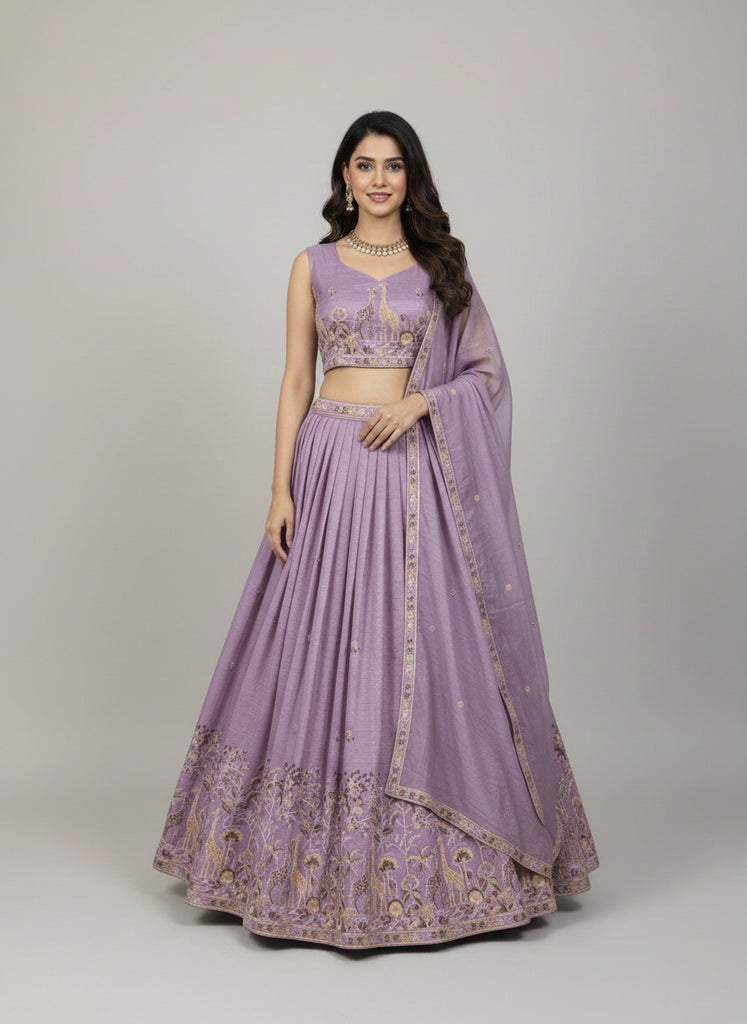 Premium Gold Crush Silk Lehenga Choli with Sequin & Thread Embroidery